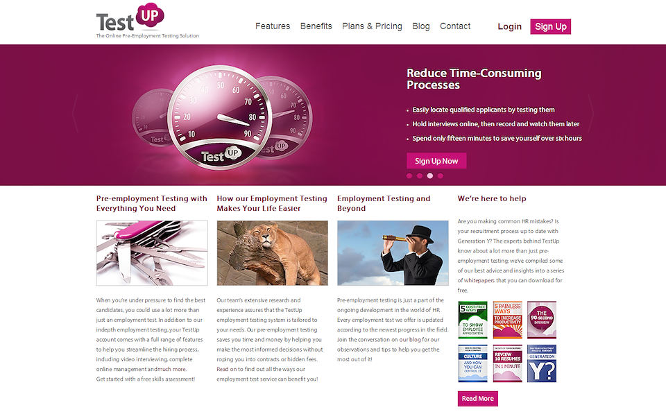 Banner and website copy I wrote for employment-testing company TestUp. I used Google AdWords to create lists of relevant search engine terms and then incorporated these words into the new website and banner ad copy I had written.