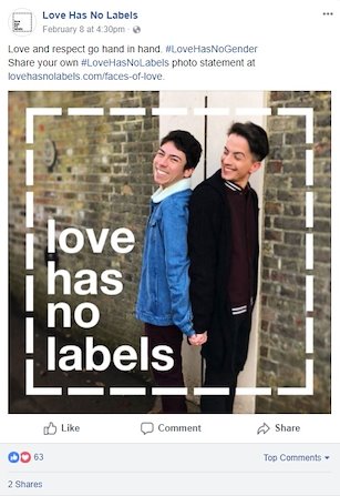 Love Has No Labels is a diversity and equality advocacy group known for their poignant videos. (If you’ve seen that video with the hugging skeletons, that was them.) Their friendly and inclusive approach translated to their social media pages, which I wrote and researched for.